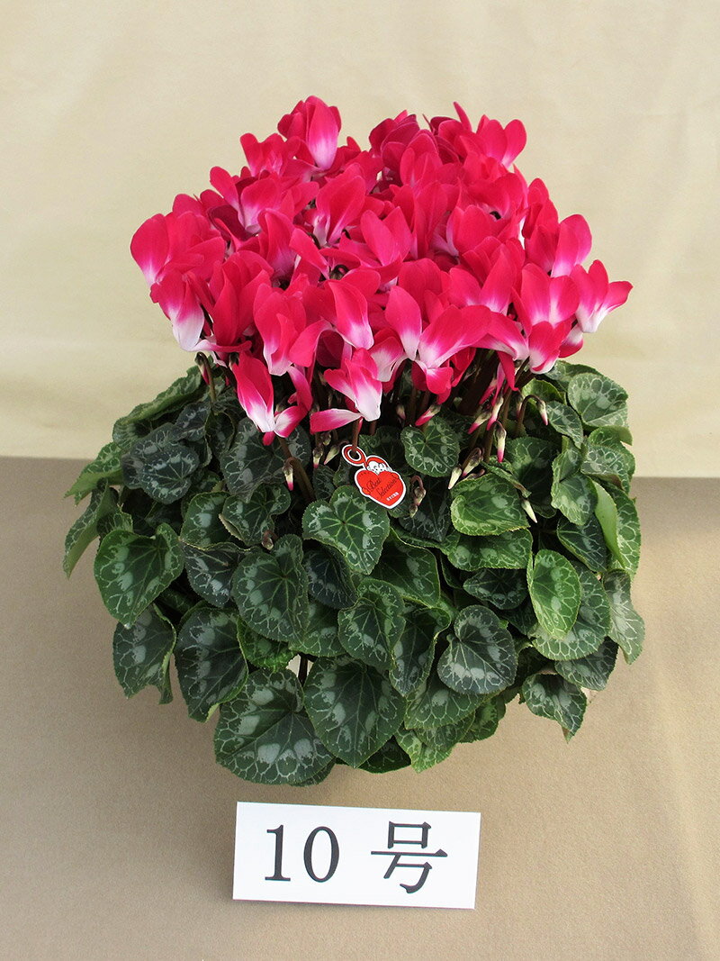 お店では、あまり出会うことのない大きさのシクラメンを、当農園で選んでお届けします。