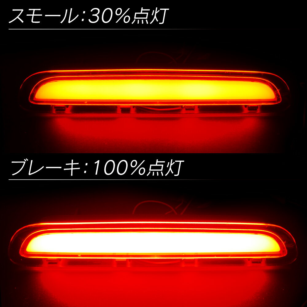 他社よりイイモノ、本気で揃えてます!! ■COB面発光 ハイマウントストップランプ 視認性・ファッション性、格段アップ! バー全体が発光するので、より強力でスタイリッシュな発光を後続車にアピール! ■ポジション時とブレーキ時の2点灯方式 ポジション時は30%、ブレーキ時は100%で点灯 ■カプラーONで、純正品と交換するだけなので簡単に取付ができます。