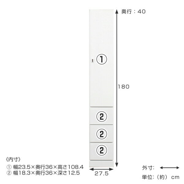 すき間収納 引出し付きラック ハイタイプ 幅27.5cm 日本製 ( 送料無料 収納ラック 隙間収納 スリム スリムラック 収納棚 扉付き 白 ホワイト キャビネット すき間 隙間 収納 ラック 省スペース 引出し スライドレール )【3980円以上送料無料】