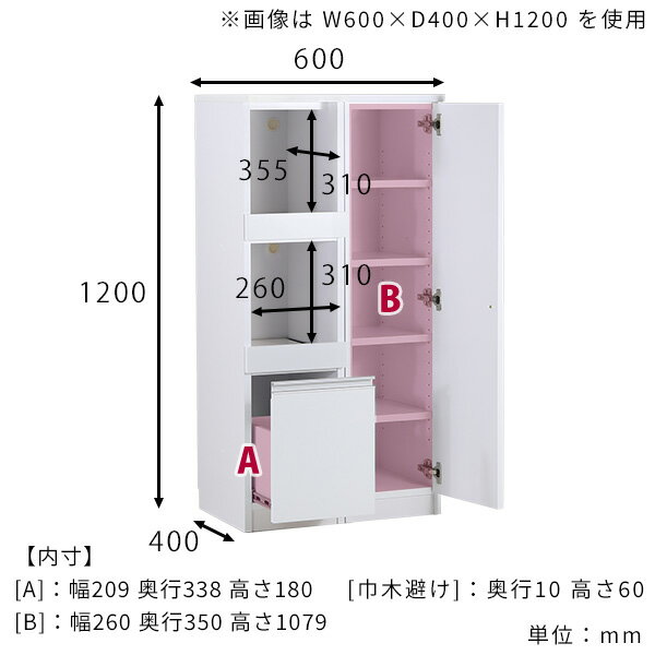 magic レンジ台×収納庫 W60×D40×H120 木目サイズサイズ:約幅600 奥行き400 高さ1200 mm材質[天板・スライド棚]メラミン樹脂化粧合板[前板]ブラウン・ダークブラウン・チーク/デルナチュレ化粧合板ホワイト/ポリエステル化粧合板ナチュラル・ホワイトウッド・オーク/強化紙[側板・内部]プリント化粧合板カラーブラウン/ダークブラウン/ホワイト/北欧チーク/ナチュラル/ホワイトウッド/オークからお選び下さい。