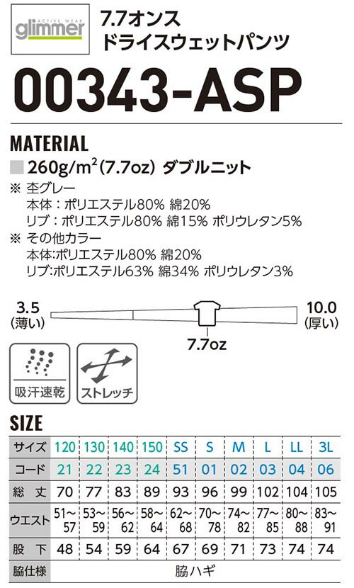 コーディネート商品(※下記画像をクリックすると各商品にジャンプします) 00342-ASZ ドライスウェップジップパーカー 00344-ASJ ドライスウェップジップジャケット 00343-ASP ドライスウェットパンツ