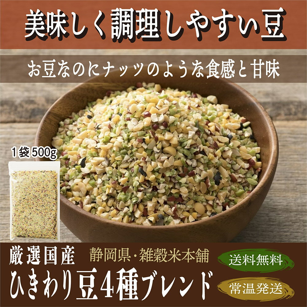 雑穀 雑穀米 国産 ひきわり豆4種ブレンド(大豆/黒大豆/青大豆/小豆) 500g お試しサイズ 無添加 無着色 送料無料 ポスト投函