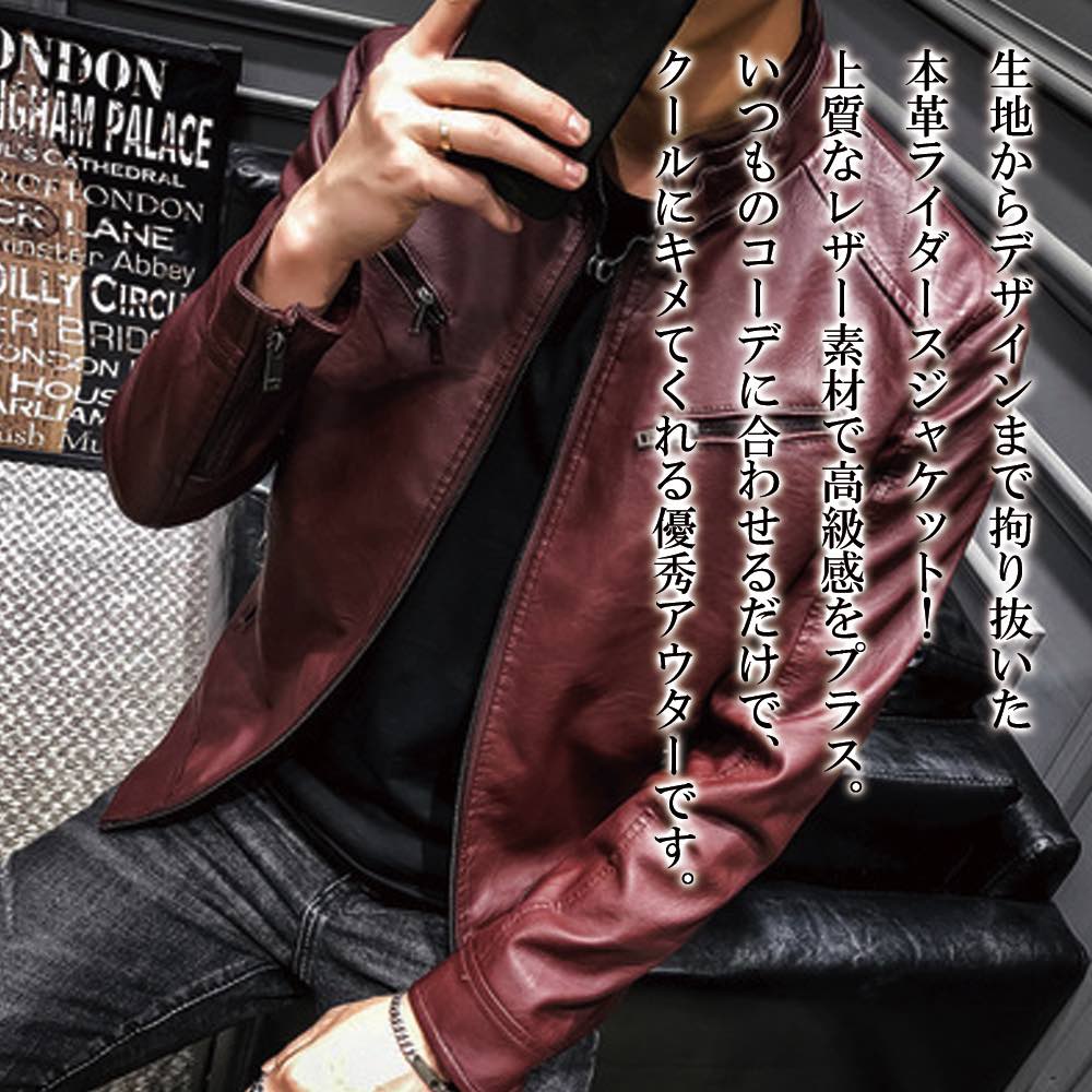 【商品名】シングルライダースジャケット【カラー】ブラック ブラウン ダークブラウン ワインレッド レッド【サイズ】M L XL 2XL 3XL【サイズ表記】・Mサイズ:着丈63 身幅51 肩幅44 袖丈60・Lサイズ:着丈65 身幅53 肩幅45.5 袖丈61.5・XLサイズ:着丈67 身幅55 肩幅47 袖丈63・2XLサイズ:着丈69 身幅57 肩幅48.5 袖丈64.5・3XLサイズ:着丈71 身幅59 肩幅50 袖丈66【素材】本革【重量】【季節】春 秋 冬【スタッフコメント】生地からデザインまで拘り抜いた本革ライダースジャケット!上質なレザー素材で高級感をプラス。