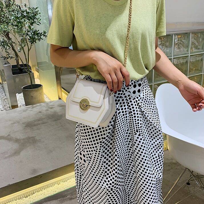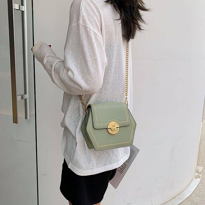 5color レディース バッグ ミニバッグ 鞄 ショルダーバッグ 肩がけ 肩掛けバッグ 斜めがけ 斜め掛けバッグ チェーンストラップ コンパクト ミニ 小ぶり 六角形 6角形 便利 フェミニン 上品 きれいめ 個性的 キュート おしゃれ オシャレ
