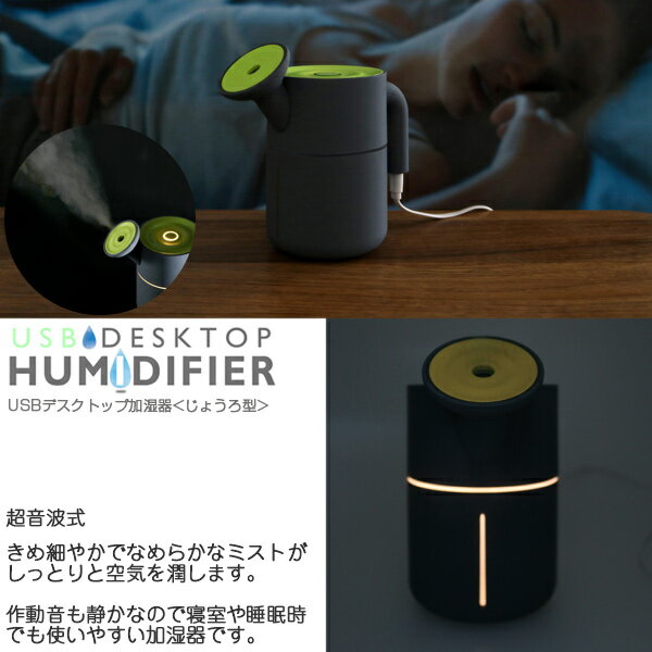 USBデスクトップ加湿器 ジョウロ型 / コンパクト スマート 加湿器 卓上 ジョロ おしゃれ 癒し LED ライト インテリア 超音波式 USB 睡眠 オフィス
