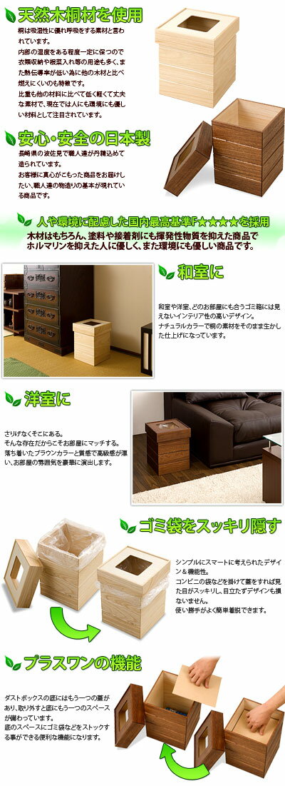 天然木桐製ダストボックス 正方形 キッチン 台所 ゴミ箱 ダストBOX 分別ゴミ箱 ダストボックス ゴミ 分別 ごみ箱 ダストbox くずかご カバー付き 木製 薄型 通販 送料無料 送料込み 新生活 組立不要 ホテル 旅館 客室 個室 備品