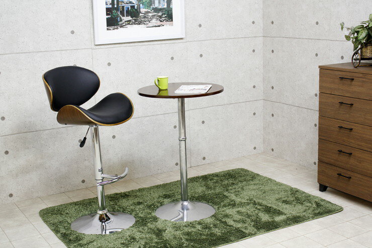 サイズ:幅52.5 奥51.5 高92.5-114.5(cm)表面材:PUフレーム:ウォールナット突板(成型合板)脚:スチール塗装:ラッカー生産国:中国・背もたれ部分と座面の丸みが特徴的。