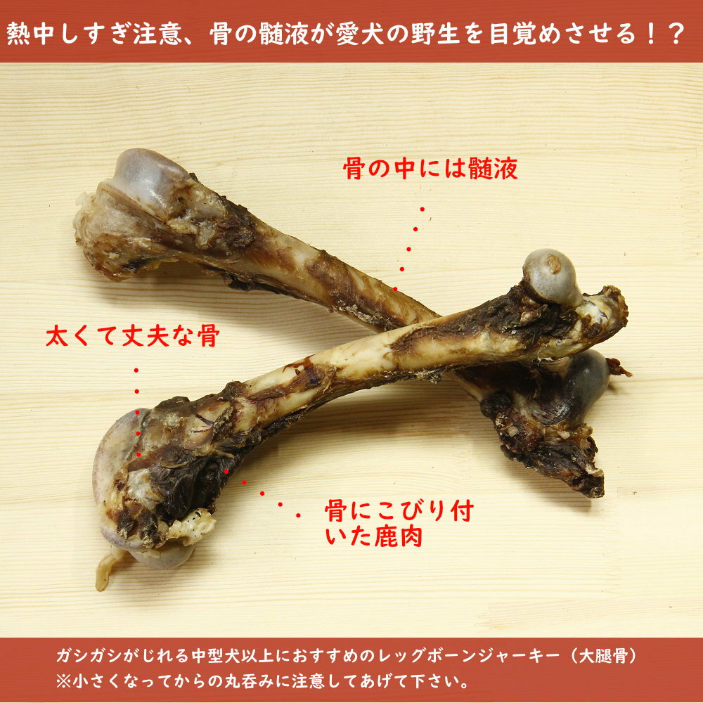 やしろのめぐみオリジナル加工、髄液の穴※鹿のレッグボーンジャーキー半分にカット加工選択できます。
