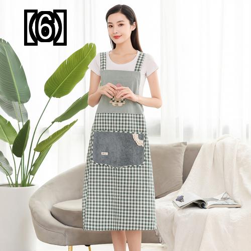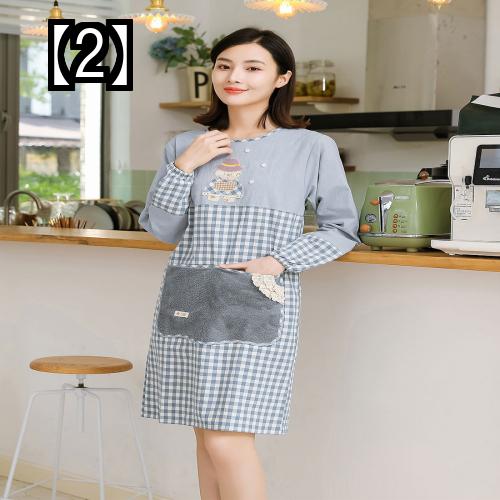 エプロン かわいい レディース 保育士 母の日 キッチン 割烹着 メンズ 防水 長袖 チェック柄 冬 グレー グリーン 青 ———×【1】グレーグリーンのチェ ———×【2】グレー青のチェッ ———×【6】グレーグリーンチェッ