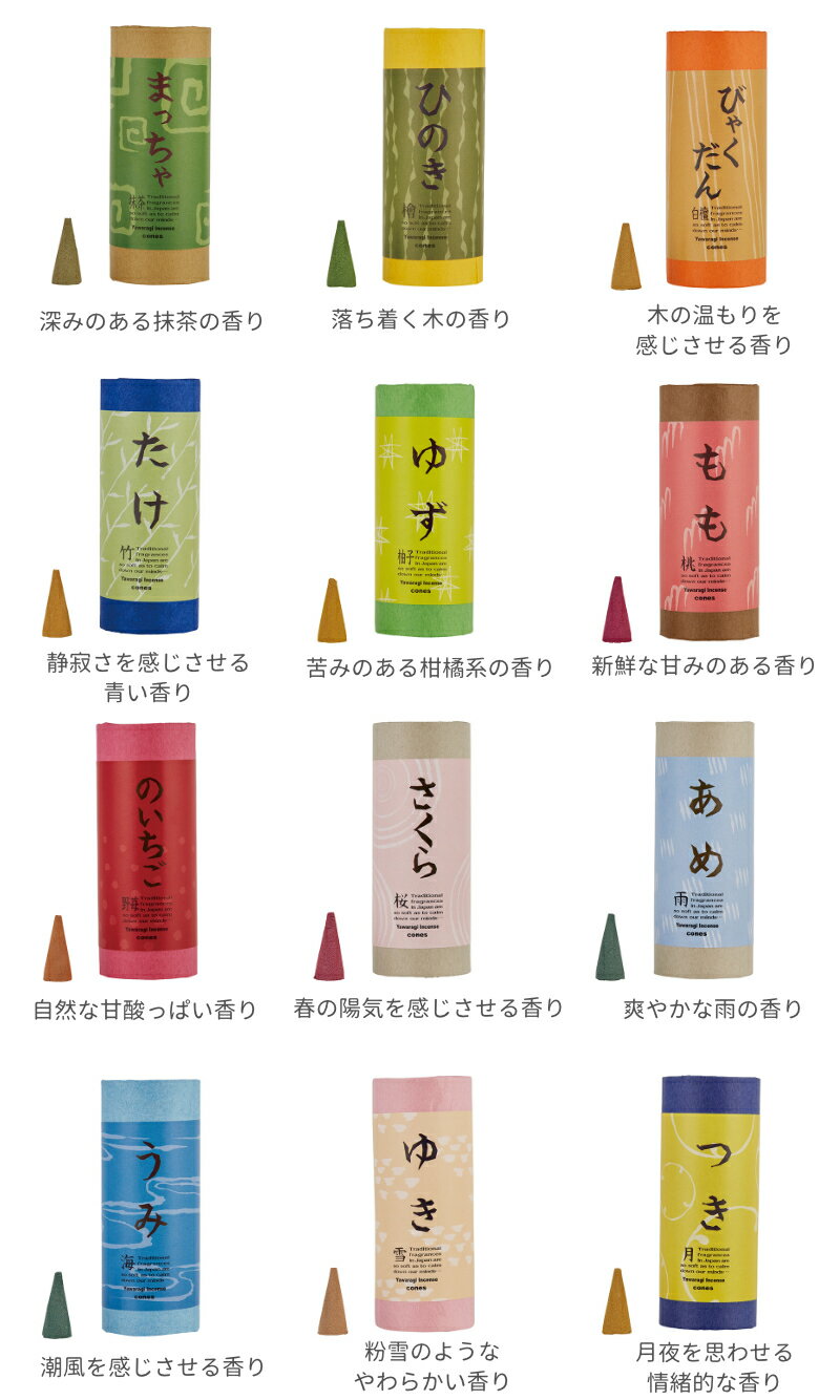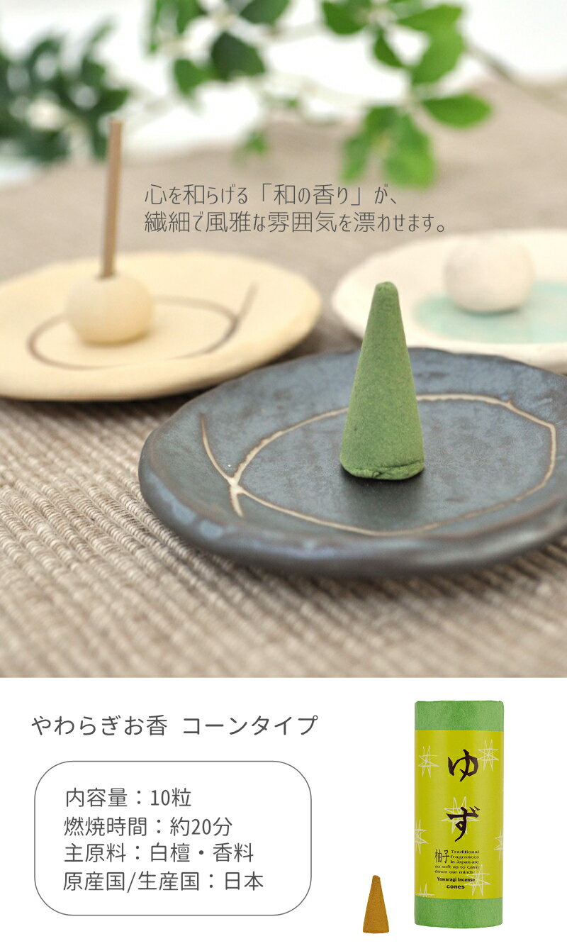 商品詳細 ■商品名 和(やわらぎ)お香 コーンタイプ ■内容量/燃焼時間 10粒/約20分 ■サイズ Φ40mm×H100mm ■生産国 日本 ■主原料 白檀、香料 ■製品コード 001-01-001~001-01-011 ■使用上の注意 ●エッセンシャルオイルを使っているので、 商品によっては火がつきにくいことがあります。