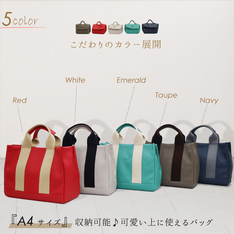 発色の良いイタリアンレザー使用の華やかなトートバッグ。